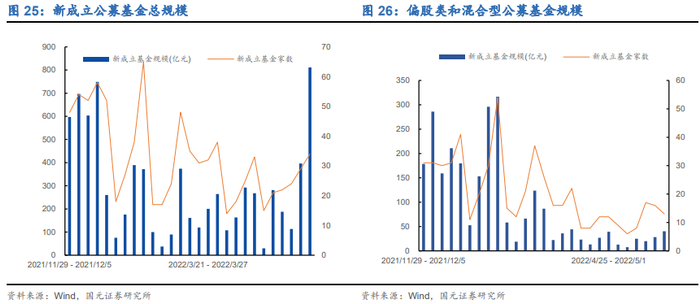 新成立基金:上周新成立公募基金规模总计811.37亿元(前期396.21亿元),其中,偏股类和混合型公募基金规模约40.37亿元,较前期增加20.13亿元。