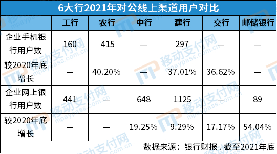 6大行对公业务数字化进展盘点:从普惠金融、机构业务、线上渠道对比