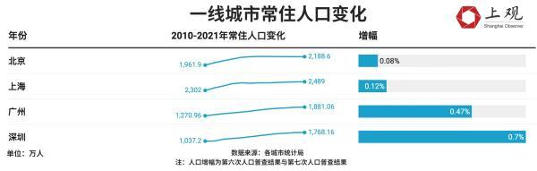 如果从数据来看,疫情以来的近两年来,除北京外,一线城市并未出现人口流失的情况,相比2018与2019年,上海、广州、深圳的人口依旧在不断增加,并且增幅还有所提高。