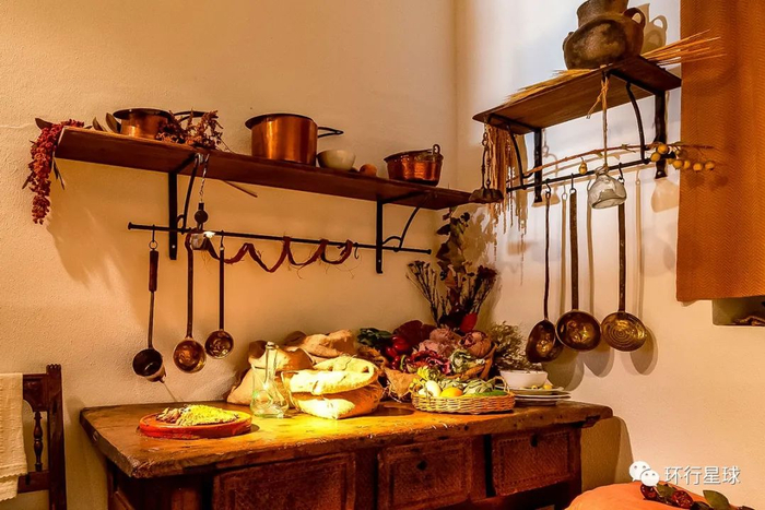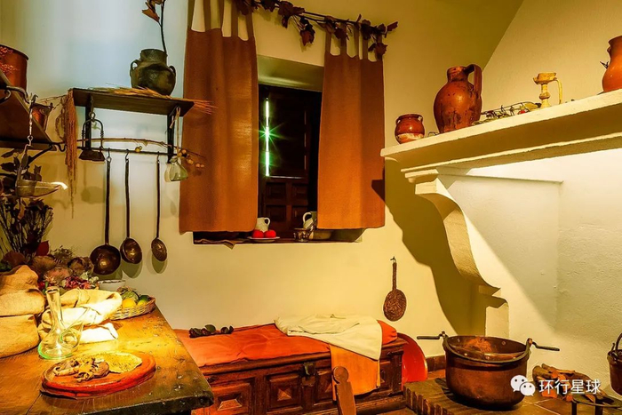 一层的庭院、会客厅、餐厅、厨房以及戏剧休闲厅通过收集当时的物件、器具栩栩如生地再现了几个世纪以前的生活,令人有种穿越时空,回到往昔的错觉。