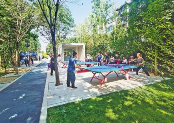 最近,石家庄市居民王胜和有了新发现:平安大街与槐安路交口东北角的那块封闭式绿地,被改造成了一座兼具运动休闲功能的小游园。王胜和说,小游园里有塑胶步道和石凳、座椅,还有3个乒乓球台,每天都会吸引很多市民来这里休闲、健身。