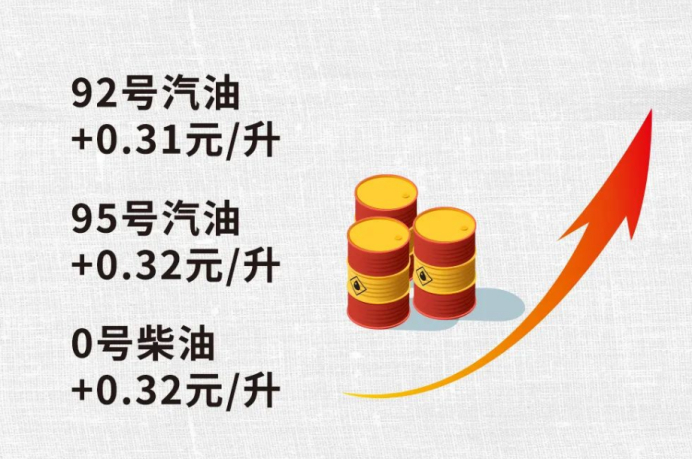 根据机构测算,此次油价变动折合每升92号汽油上调0.30元、95号汽油上调0.32元,0号柴油上调0.32元。以油箱容量50升的普通私家车计算,这次调价后,车主们加满一箱油将多花15元左右。卓创资讯表示,本次上调落实后,国内92号汽油全面进入9元时代,部分地区95号汽油将正式迈入10元时代,比如:广东、广西、吉林、四川、云南等。多数地区95号汽油价格也接近每升10元。比如北京,调价后,95号汽油每升将涨至9.91元。
