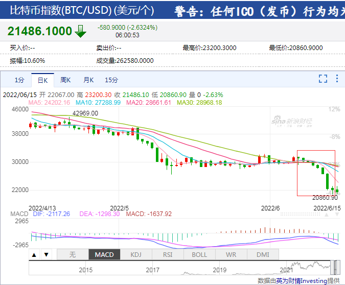 “从今天的技术指标来看,比特币K线收出了一个探底针形态,这与5月12日的交易形态很相似,当时的价格在2.8万美元附近,一个月中比特币盘横震荡到目前破位下杀。现在又有一些国内投资者觉得可以抄底了,但是根据股票交易经验来看,既然当前比特币价格距离跌破2万美元已经一步之遥了,从技术上来说也是要去碰一下这个关口的。另外一方面,美联储的加息周期才刚刚开始,现在说加密数字货币市场企稳就是赌徒心理。”上海资深加密货币市场分析师王衡(化名)告诉本报记者。