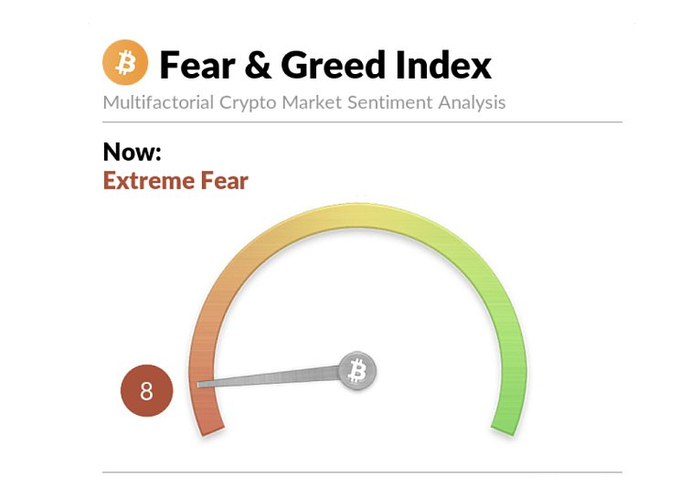 比特币“恐惧与贪婪”指数已降至8,极度恐惧