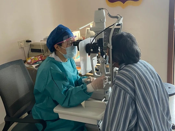 在市六医院金山分院眼科专家门诊内,来自上海市第六人民医院的眼科副主任医师穆晶正耐心细致地为前来就诊的患者给予专业性的指导,“先把老花镜度数去正确调整下,避免用镜过度。其他没什么问题,玻璃体液化的问题自己平时关注一下,定期随访就行。”