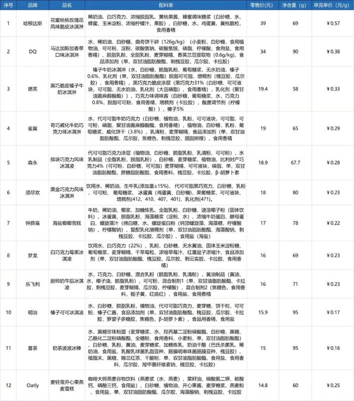 对雪糕的配料和口味进行测评不仅是为了让我们自己吃得放心,也能相应判断出它的价格是否虚高。