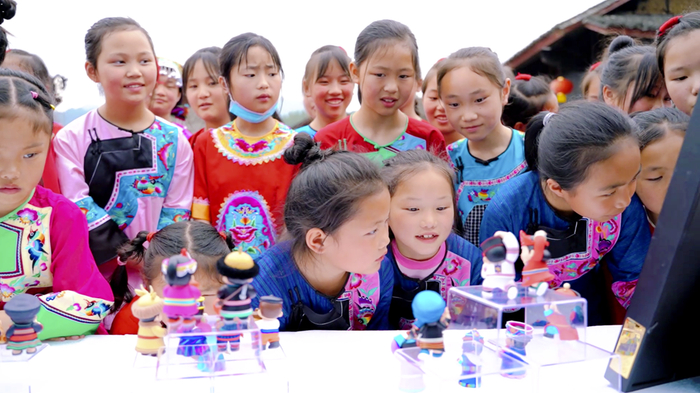 2022年5月,中国民族贸易促进会将“民族娃娃”带去湖南湘西的十八洞村,少数民族小朋友现场欣赏并绘制“民族娃娃”。受访者供图