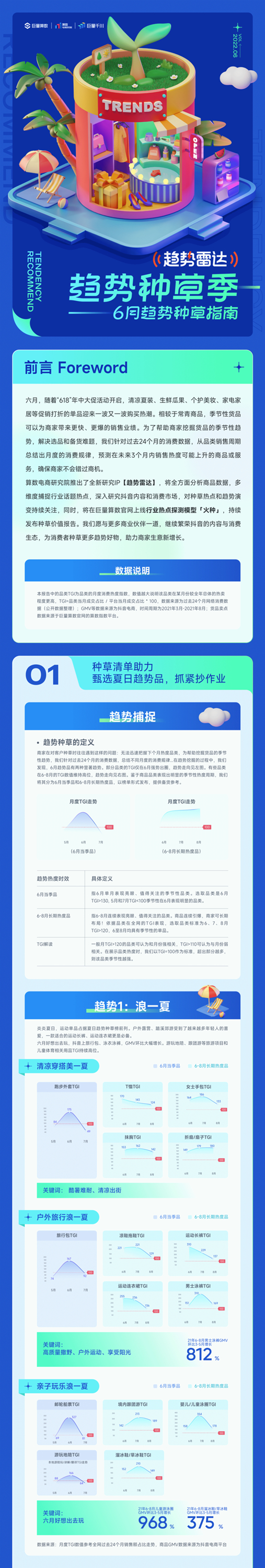 算数电商研究院最近推出了「趋势雷达」系列课题研究,它提供了一种提前洞察消费需求变化的全新视角:每天都有大量用户在巨量域内生产和消费内容,从内容的汪洋大海中是否有可能提前萃取出消费趋势的潜在变化线索?在新发布的报告「趋势种草季:6月种草指南」中能够看出一些端倪。