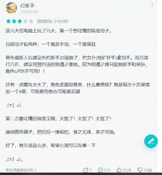 相较于买断制较多的主机和单机游戏,手游一般以长期运营为主,版本更新带来的数据波动和游戏环境的变化也时刻影响着玩家对游戏的评价。然而,当玩家针对游戏的某一版本进行评测后,因为游戏的快速迭代,这些评测并不具备长期的时效性和准确度,玩家也很少会回头修改评价。