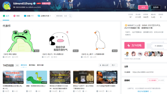 除了森纳映画,还有许多游戏实况up主同样收获了大量粉丝。像中国BOY超级大猩猩、EdmundDZhang这些游戏区大up主,都通过游玩实况的形式对各种游戏进行了介绍和评测,他们的关注者有数百万,每期视频的播放量通常也会超过百万。