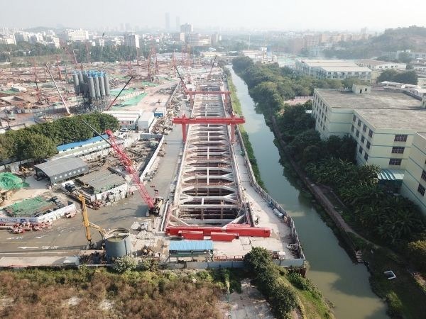 十二号线赤沙至赤沙滘区间左线隧道全长约1843米,盾构机从赤沙站始发后向东南方向掘进,先后下穿河涌、地铁车辆段、高速路和酒店等建构筑物,到达赤沙滘站接收。施工区域紧邻河涌,区间隧道与河涌最长段并行距离达1000米,对施工过程中的各项管控措施和盾构机性能提出极高的要求。