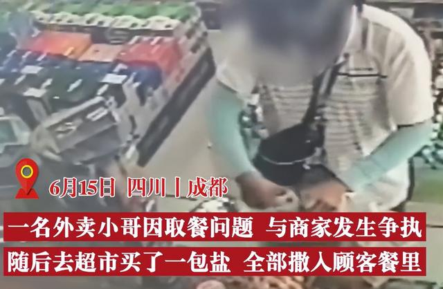 据西部决策网视频报道,6月15日,在四川成都,一名外卖小哥因取餐问题,与商家发生争执,随后去超市买了一包盐,全部撒入顾客餐里。