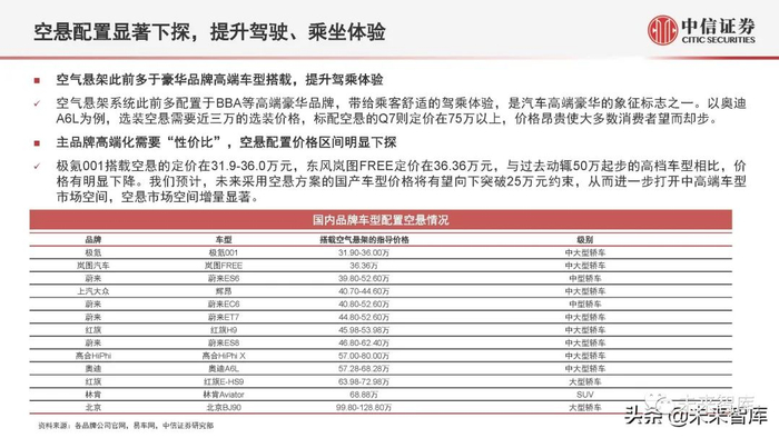 空悬配置显著下探,提升驾驶、乘坐体验