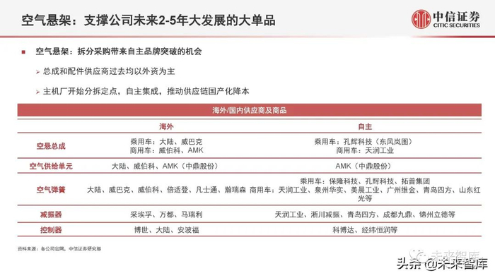 细分产品来看,空气弹簧和空气供给单元预计将占有50%以上的市场空间份额。(报告来源:未来智库)