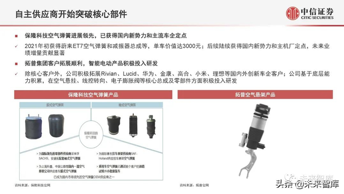 保隆科技空气弹簧进展领先,已获得国内新势力和主流车企定点