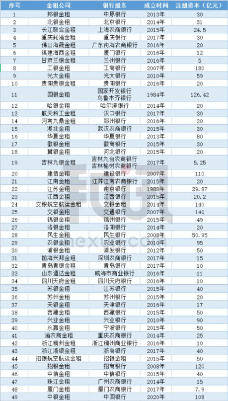 据统计,截至2022年5月末,已开业的银行系金融租赁公司共49家。