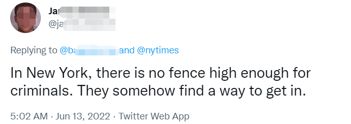 “在纽约,没有足够高的栅栏能挡住罪犯,他们总能找法子进去。”