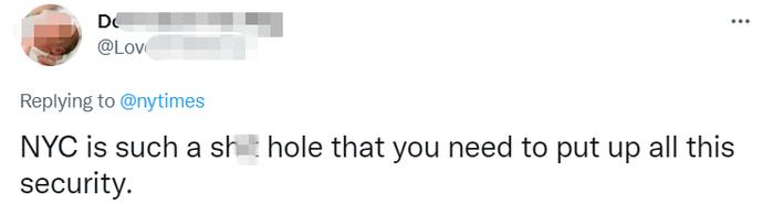 “纽约就是个烂地方,所以你需要加强这些安保措施。”