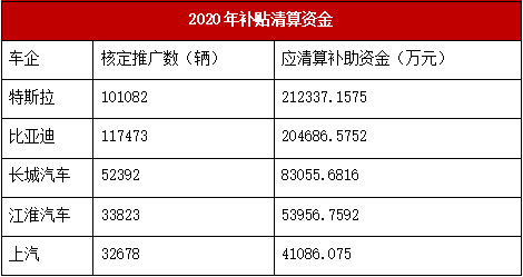 另外,根据工信部发布的《关于2016-2020年度新能源汽车推广应用补助资金清算审核初审情况的公示》补贴清算中(表1),特斯拉被核准了10.1万辆车,获得21.2亿元新能源汽车补贴资金。