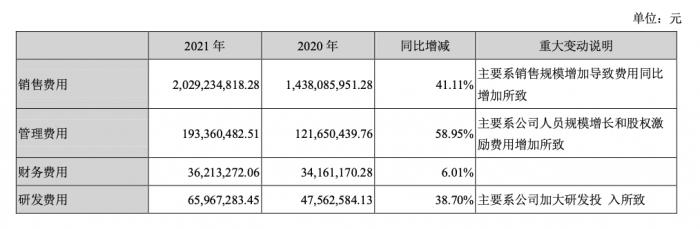 2021年,水羊股份的销售费用由2020年的1.4亿元增至2亿元,同比增长41.11%。官方对此解释为,“主要系销售规模增加导致费用同比增加所致。”