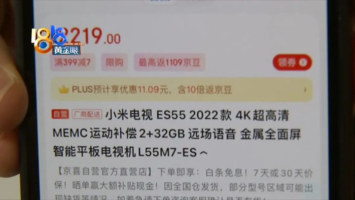 找到一家小米之家门店,工作人员告诉记者,ES552022款的电视机在官方商城只有一款出售,价格2599块钱,去年6月份上市。因为没有看到这两个链接对应的具体实物,仅从介绍和参数上无法判断一不一样。记者拨打了京东商城客服。