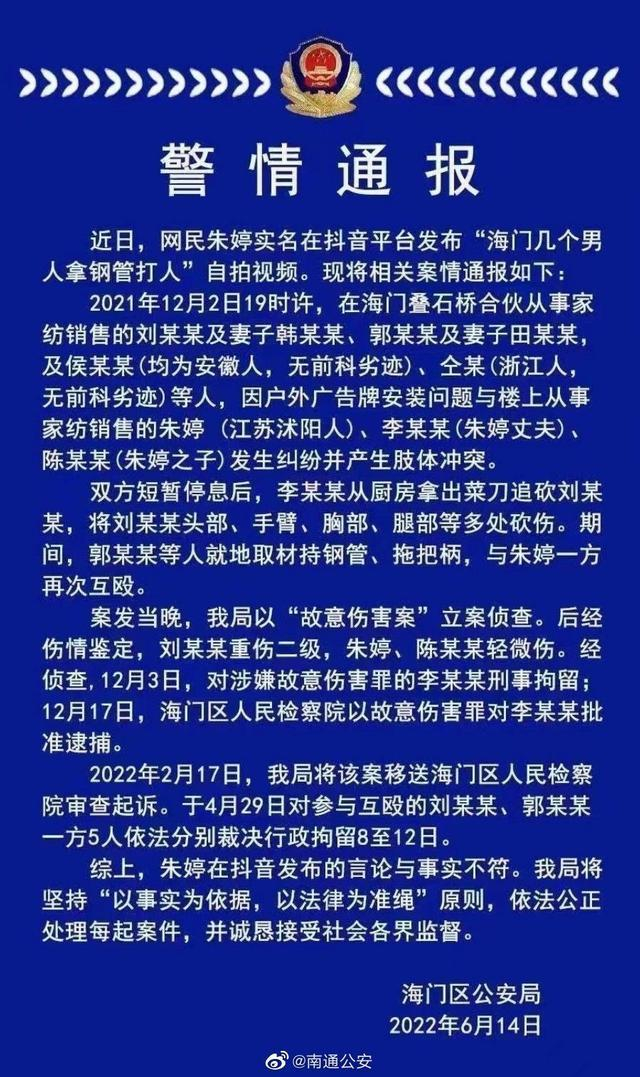 河南鹤壁的不实举报并非孤例,就在近日,江苏海门警方也针对 “海门几个男人拿钢管打人”自拍视频一事发布通报回应,称网民朱婷发布的言论与事实不符。