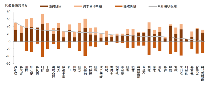 图表22:国际主流税收优惠政策大部分属于广义EET型,即在缴费和资本利得阶段享受税收优惠,在提取阶段需要偿还税收优惠
