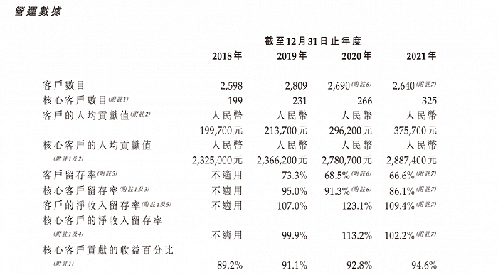 恰恰事实上,大多SaaS企业都难以避免大客化的副作用。关注玄武云核心客戶留存率,报告期内,最近三年留存率分别为 95.0%、91.3%、86.1%,按照这个趋势,未来玄武云的营收势必受到影响。
