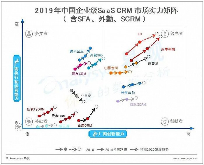 需要补充的是,在此前市面上的主流报告中,出现最多的CRM厂商是销售易、纷享销客和红圈营销等当红明星。