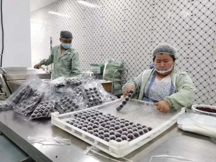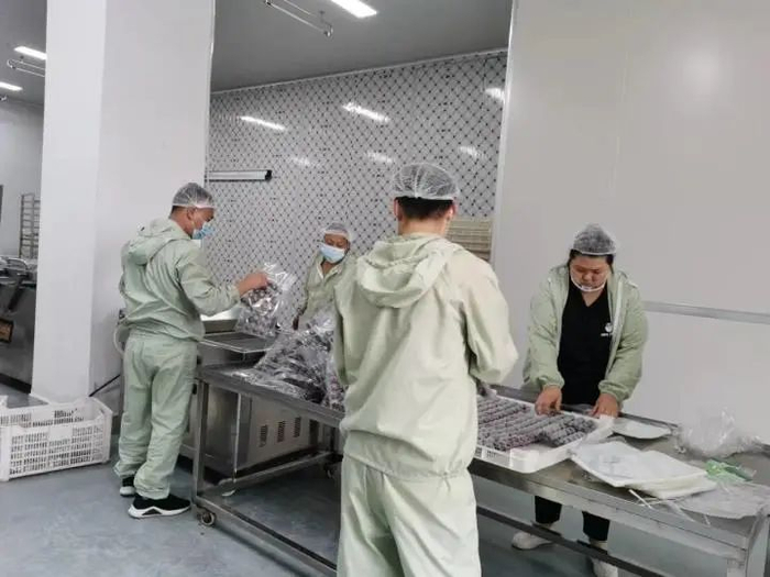 在青田县侨乡农品城中央冷链冷库的全冷链杨梅车间里,工作人员身穿工作服,戴着手套、口罩,对当天采摘的杨梅进行预冷抽湿、挑拣称重、密封包装等一系列工序后,每一盒杨梅都穿上了层层“外衣”,乘坐“专车”,开启了一场越洋之旅。