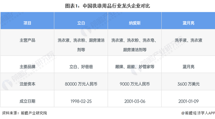 1、中国洗涤用品行业龙头企业全方位对比