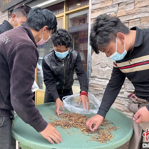 记者在玉树市西杭野生冬虫夏草交易市场内看到,买卖冬虫夏草的商户及牧民群众络绎不绝。“今年到现在我已经收了50斤冬虫夏草了,北京、上海、广东那边客户的需求量比较大,已经发了不少货了。”从事虫草收购和销售的巴丁正在以每斤65500元的价格收购了一批中等质量的虫草。