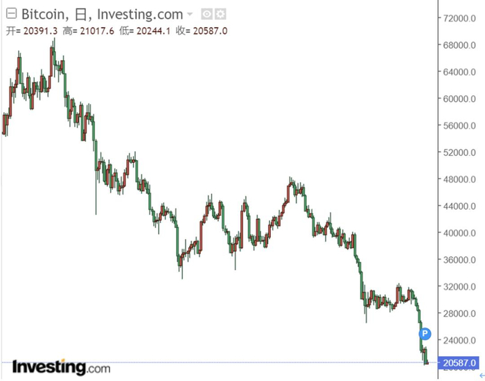 6月17日,比特币日内再度重挫10%,逼近2万美元关口。从2021年11月6.9万美元的高点滑落下来,比特币跌了70%。