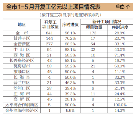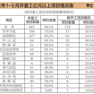 全市共开复工亿元以上项目841个,同比增长34.1%,完成全年目标任务56.1%;总投资9540.2亿元,同比增长20.4%。其中,复工项目668个,同比增长38.9%;新开工项目173个,同比增长18.5%。