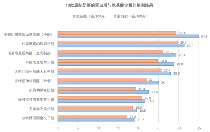 本次比较试验发现,以每100克计,10款样品的蛋白质含量在19g-35.3g,平均含量为26克,均为“高蛋白质”食物。
