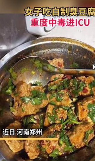 4、女子吃自制臭豆腐重度中毒进ICU 近日,河南郑州。吴女士突然出现呕吐、腹泻等症状,送医后症状加重,甚至呼吸衰竭……医院诊断这是食用了自制臭豆腐而中毒,不当的制作方式产生了肉毒杆菌,导致肌肉神经麻痹并出现相应症状。医生建议尽量不吃自制发酵豆制品,如豆瓣酱、豆豉、臭豆腐等。(@光明网)