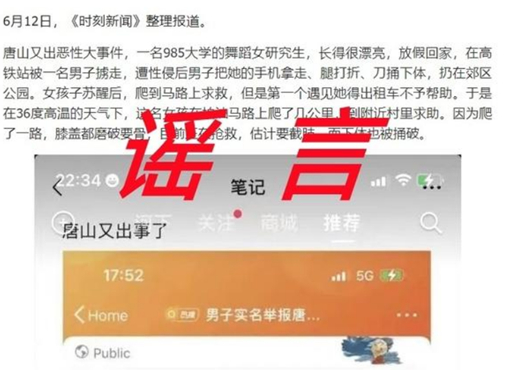 1、“唐山又出恶性大事件”系谣言 16日河北网信部门表示,近日网传“唐山又出恶性大事件:女研究生被强奸、打断腿爬两公里求助”信息,经核实查证为谣言。网信部门提醒,要牢固树立法治观念,自觉遵守法律法规,不造谣、不信谣、不传谣,共同维护清朗网络空间。(河北广播电视台)