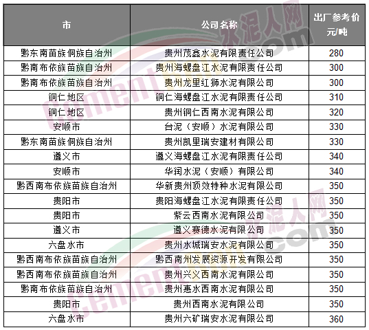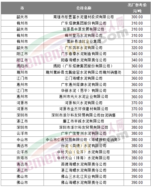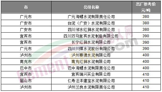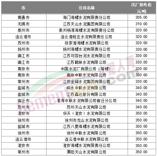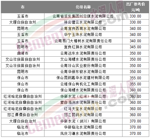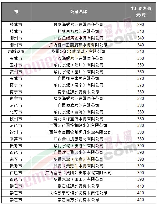 *上述出厂参考价来源水泥人网信息中心人工采集,仅供参考。如与实际成交不符请以实际成交价格为准。
