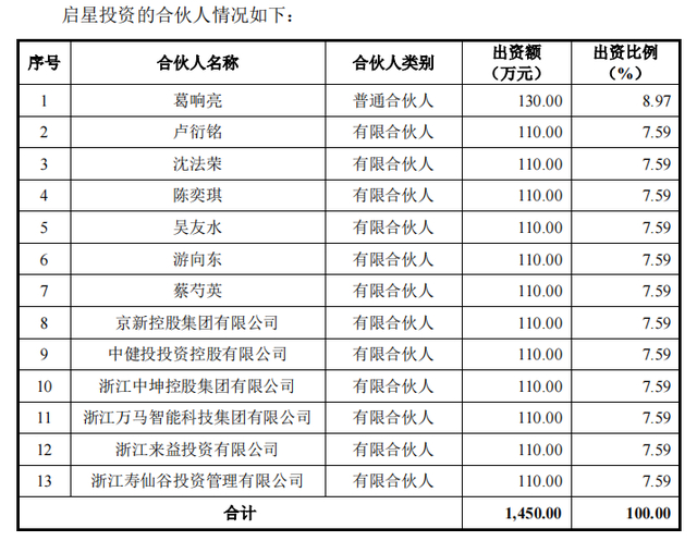 其中,启星投资的合伙人浙江来益投资有限公司的控股股东为浙江医药(600216.SH),合伙人京新控股集团有限公司为京新药业(002020.SZ)的二股东,浙江寿仙谷投资管理有限公司为寿仙谷(603896.SH)的大股东,浙江万马智能科技集团有限公司为万马股份(002276.SZ)的二股东,沈法荣是医生众创平台杏香园的创始人。