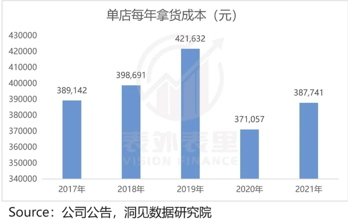 不仅如此,成本控制得好,意味着有利润空间让渡给加盟商。如下图,绝味虽然在加速扩店,但其单店拿货成本却是持续下降的。