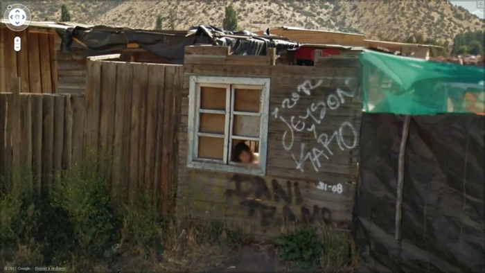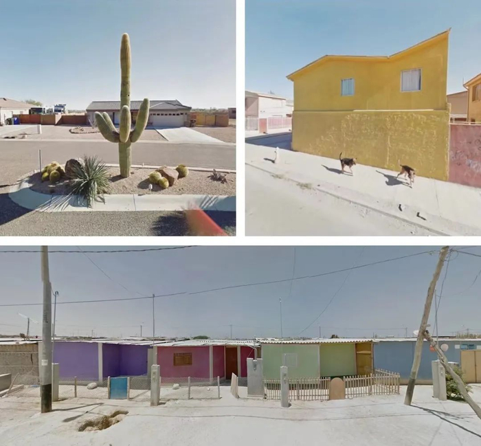 而对于一个较为鲜为人知的群体——“广场恐惧症”患者来说,街景的出现更有了一层特别的意义。新西兰籍艺术家杰基·肯尼(Jacqui Kenny)便是一位“广场恐惧症”患者,这种焦虑症会让患者对出现在公共空间时产生焦虑情绪,因此旅行对于他们来说具有挑战。肯尼使用谷歌街景漫游全球,并筛选街道和景观的图像,创作了系列作品《广场恐惧症旅行者》(The Agoraphobic Traveler)。肯尼在创业失败的低谷期,开始了这一系列的创作,她说:“我喜欢寻找遥远的城镇和尘土飞扬的风景,充满活力的建筑瑰宝,还有无名的人,所有这些都被时间冻结了。我完全被街景这一奇特而广阔的平行宇宙所吸引,并通过截屏来捕捉和保存它隐藏的、神奇的领域。我意识到,这些照片可能会像传统摄影一样美丽和感性。”