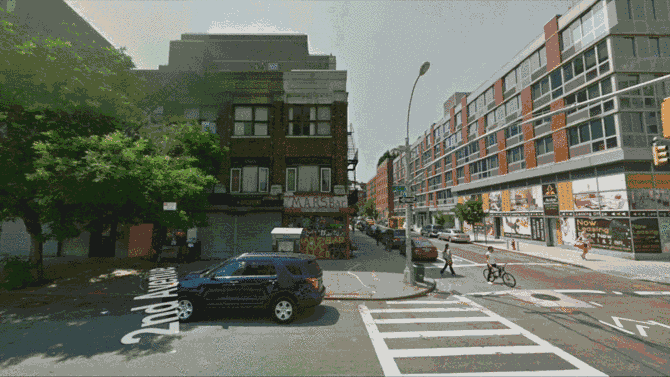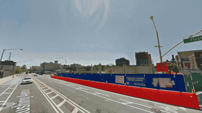 实际上,在谷歌街景官方推出“时光机”功能之前,艺术家贾斯汀·布林德(Justin Blinder)的作品《腾空》(Vacated)系列,通过将美国城市规划部的PLUTO数据集与谷歌街景结合,挖掘不同时期的数据集,将纽约一些特定位置的街景前后对比制做成GIF图像,展示了不断变化的城市景观,记录了纽约城市的士绅化过程。