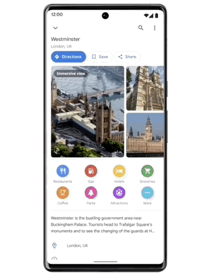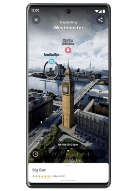 新的沉浸式景观首先是一种空中街景:用户可以从上俯瞰一个地点,了解周围的环境,然后下降到街道水平,查看你可能想要去的特定地点。沉浸式街景还覆盖了这一地点的实时交通信息,通过拉动时间滑杆,还能查看该区域在不同时段或天气下的样貌。另一大突破是,沉浸式街景还能无缝“进入”建筑内部。这项最新服务将首先推出纽约、洛杉矶、旧金山、伦敦和东京版本。