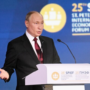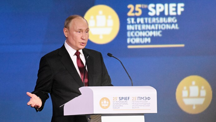 俄罗斯总统普京17日在第25届圣彼得堡国际经济论坛上发表讲话。