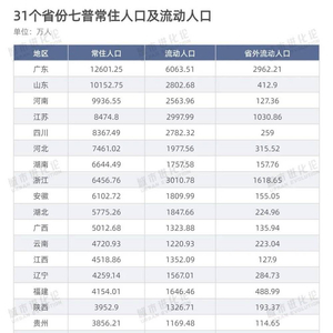 日前,国家统计局公布2020中国人口普查年鉴,详细披露了第七次人口普查的分项数据,不仅31个省份的吸引力强弱一目了然,各地人的“流动喜好”亦随之浮现。