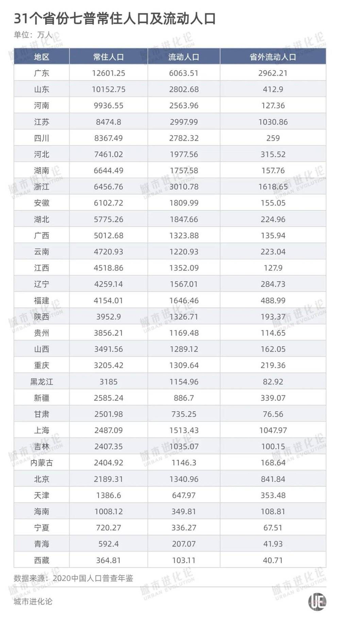 比如,广东外来人口逼近3000万大关,江苏、浙江和上海均超过1000万,结果或许不意外,但究竟是谁在“疯狂”涌入沿海发达地区?