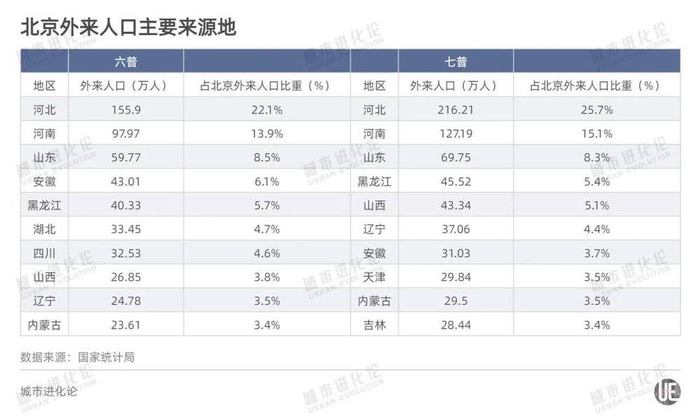 相较而言,北京对北方人更有吸引力。其中,河北人、河南人、山东人不仅是“外来大户”,且十年间“地位”未变。同时,其对天津人的吸引力也在进一步加大,从2010年的8.3万人,增至30万。