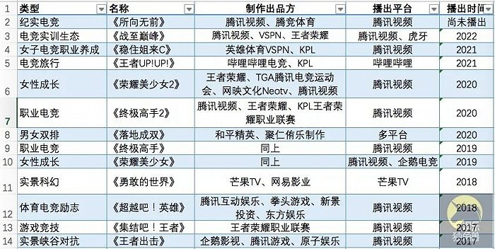 而近几年来,电竞综艺逐渐增多,发展方向也趋于多元,娱乐独角兽不完全统计了近几年来由视频平台制作的电竞类综艺名单,发现与《王者荣耀》《英雄联盟》等国内知名度较高moba游戏生态紧密相连的腾讯是电竞综艺的大户。