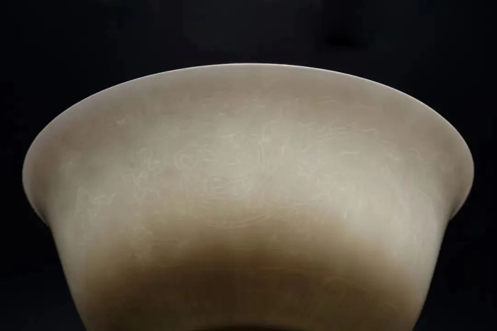 明宣德 甜白釉暗刻云龙纹茶盅,透光可看到纹刻若隐若现