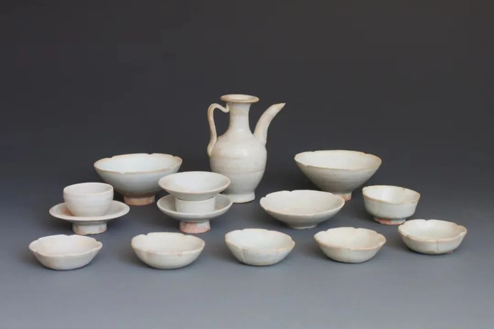 此后,唐代的“南青北白”局面,让白瓷撑起半壁江山。前有颜真卿写“素瓷传静夜,芳气满闲轩”,后有皮日休赞邢、定的白瓷茶瓯,“圆似月魂堕,轻如云魄起;枣花势旋眼,蘋沫香沾齿”。这一时期的白瓷,得益于北方特有的含铁量较低的高铝土,尤其邢窑,烧制出的白瓷呈现细腻的灰白之色。《陆羽茶经》中就曾写到,“邢瓷类银,越瓷类玉......邢瓷类雪,越瓷类冰......邢窑白而茶色丹, 越窑青而茶色绿”。